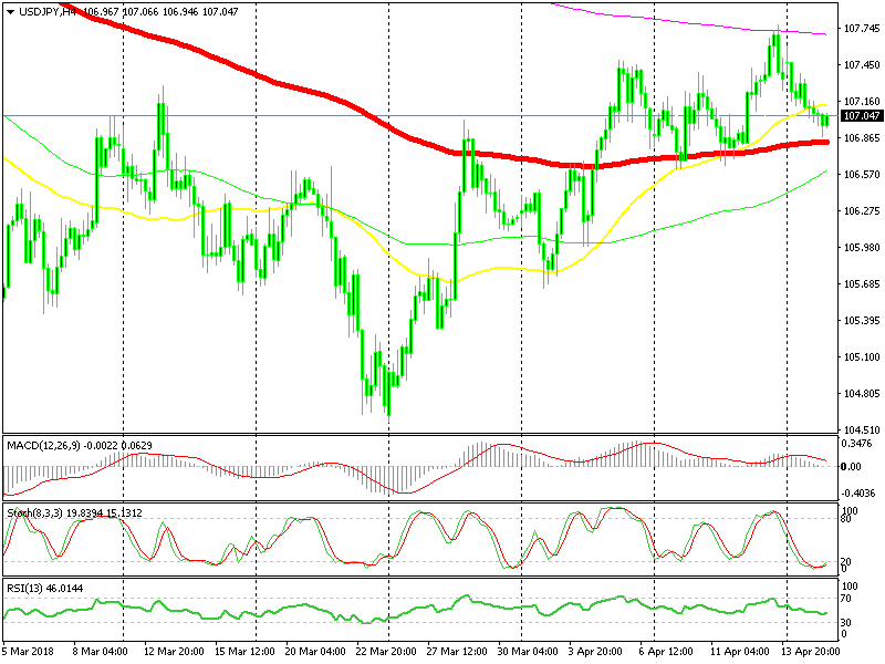 Yesterday we opened a forex signal in USD/JPY as this pair was retracing lower after three weeks of trending higher. We were counting on the 50 SMA (yellow) on the H4 chart. This moving average had provided support and resistance previously so it looked like a good indicator to use for our forex trade.