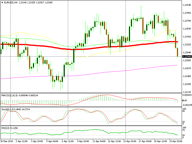You can see that the US Dollar is trending up just by looking majors. A few days ago, EUR/USD couldn’t move below the 100 SMA (red) on the H4 chart, today it can’t even make a decent retrace up. This pair has lost more than 50 pips this morning without looking back.