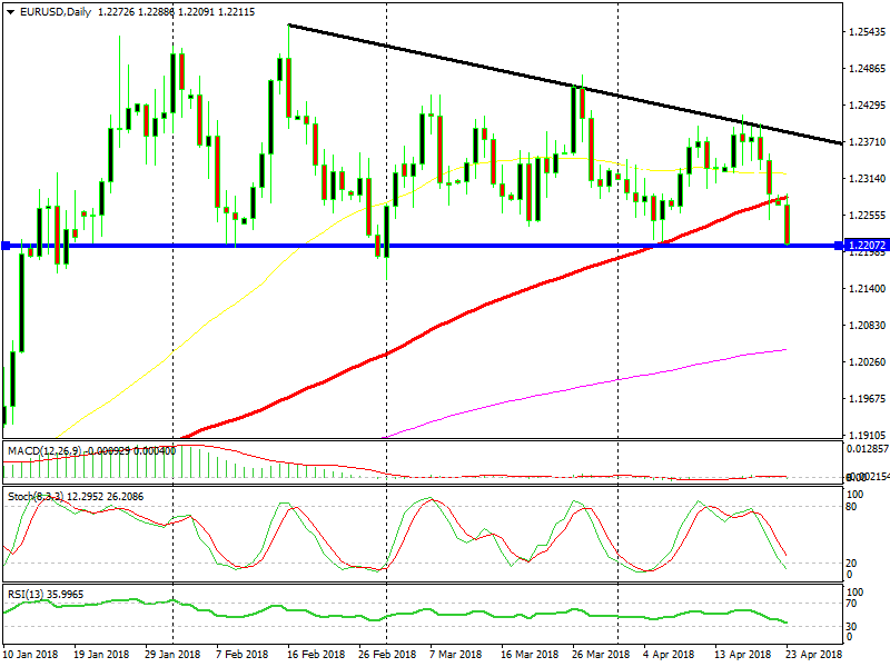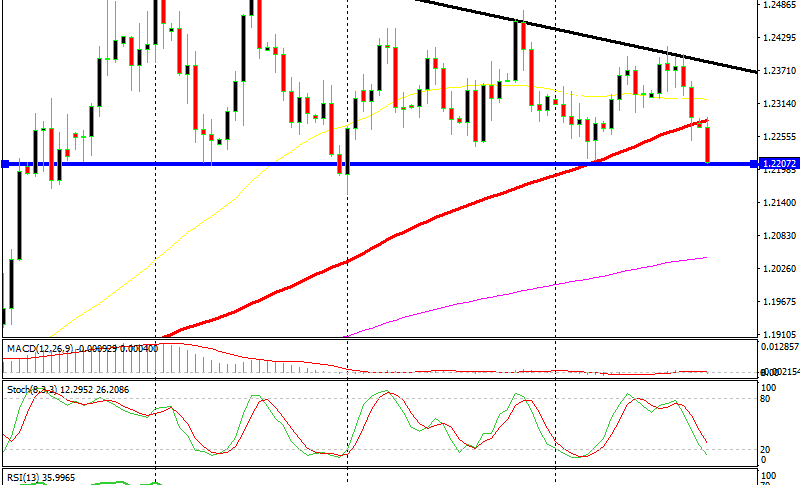 It broke the 100 SMA (red) without much trouble and now we are at the bottom of the range around 1.22. The price action today is pretty encouraging for sellers. If you switch to the hourly chart you can see that today the buyers couldn’t put up any fight at all; as soon as they began to push higher, the sellers overwhelmed them. It’s been the same price action in the last three days actually, so the bearish momentum is pretty obvious.