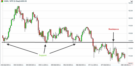 Support and resistance levels are probably one of the simplest forex trading strategies and one of the best. They don’t need much explanation either. Basically, you buy at support and sell at resistance. For a support or resistance level to be established, it should have reversed the price twice. Although, don’t expect the support and resistance levels to work exactly to the pip. Remember, it is not an exact science. The higher the time-frame of the chart, the more room you should give these levels.