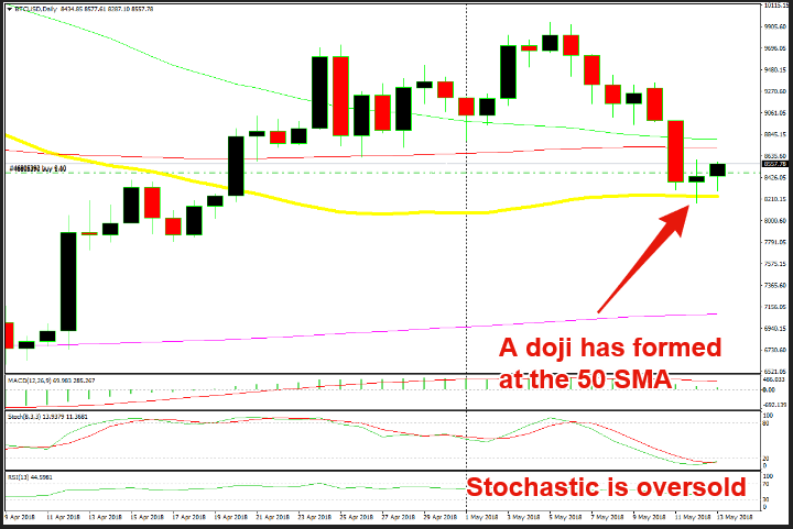The price has been trying to break below the 50 SMA (yellow) in the last three days, but it seems like the sellers are failing. If you scroll back on your daily chart, you will see that this moving average has provided support back in December last year when the massive bearish wave started in Bitcoin and other major cryptocurrencies.