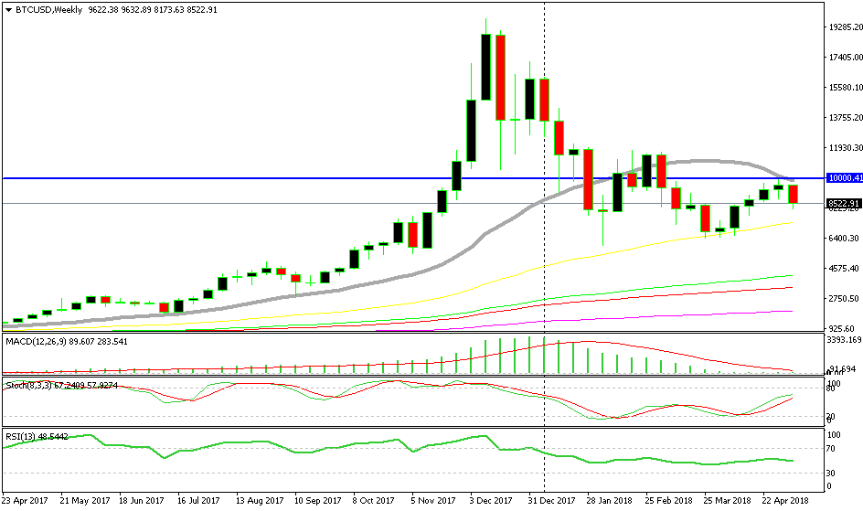 We had a long-term buy forex signal in Bitcoin until a few weeks ago. We had to reopen it a few times because we had some technical issues as we migrated to the new FxLeaders site. You may have noticed it if you have been following us for more than 2 months. Now that the migration to the new site is complete, we are thinking of opening another forex signal in Bitcoin. There is an interesting chart setup on the daily timeframe, but that’s in contradiction with the setup on the weekly chart. The weekly Bitcoin chart is telling us to sell, while the daily chart is screaming buy.
