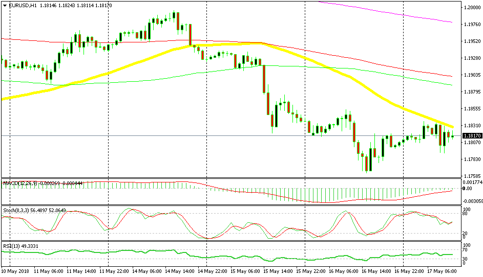EUR/USD has retraced up this morning. But the 50 SMA (yellow) has been providing solid resistance in the last several hours. It looks like an interesting opportunity to sell this forex pair. Although, we will follow the price action a bit longer to see if a lower reversal is coming, so stay tuned guys.