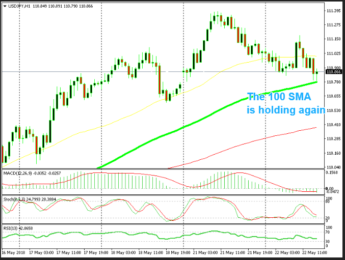 We already have a buy forex signal in this pair. It hasn’t been a good trade because the of the strong USD pullback since midday yesterday. But, the h1 chart s severely oversold and the H4 chart just became oversold. The 100 SMA (green) is also providing support, so it seems like USD/JPY might reverse back up now, fingers crossed.