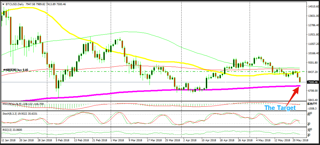 Bitcoin has taken a bearish turn this week, as the daily chart above shows. It has lost around $1,000 since Monday morning and it has finally moved clearly below the 50 SMA (yellow). Now, it seems as the sellers are eyeing the 200 SMA (purple).