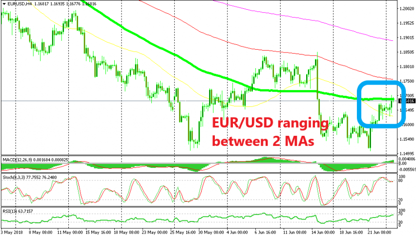 The reason that EUR/USD has stalled at these levels is the 100 SMA (green). This moving average hasn’t exactly been the perfect support and resistance indicator, but now it seems like the 100 SMA is doing that job.