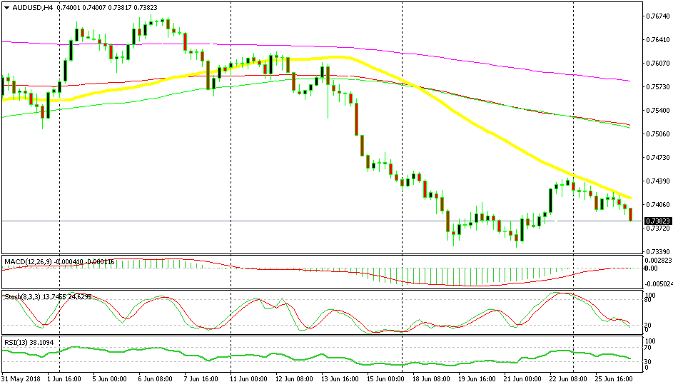 But, if we switch to the H4 chart, we see that the bullish move of the last few days is just a retrace of the bigger bearish trend. The buyers kept buying until they reached the 50 SMA (yellow). It seems like this moving average might have been the target for them.