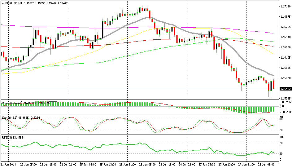 Although, I decided to go short on this pair for two reasons. The first reason is technical. EUR/USD is on a downtrend which has picked up pace in the last two days. That should be enough for most forex traders, but I like to get confirmation for my trades.
