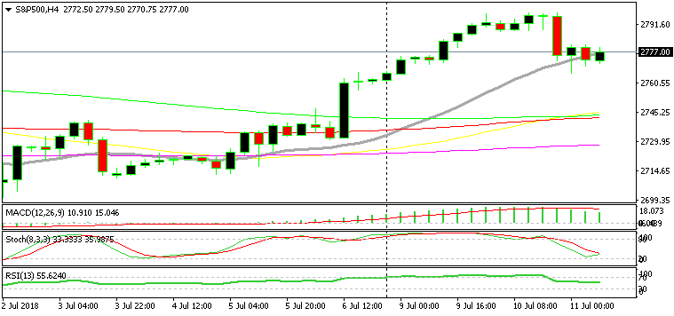 The S&P has lost more than 30 points but it has reached the 20 SMA (grey) on the H4 chart and it seems like the sellers have stopped selling