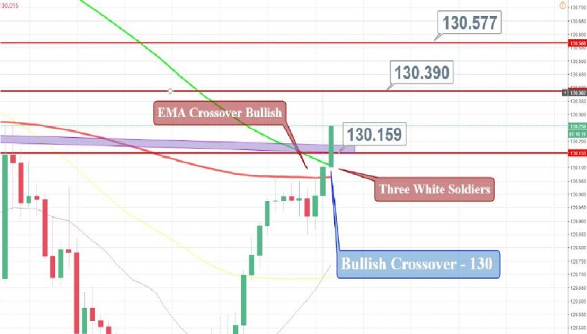 On the 2 hour chart, the EUR/JPY has a bullish crossover on 100-periods MA and the same level (130) is now extending a significant support to the Japanese cross. The pair has also violated the triple top pattern which provided a strong resistance near 130.150.