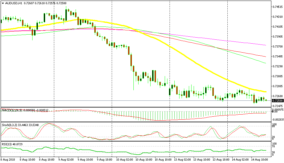 The situation doesn’t look good for the Aussie. Australia is very dependent on exports to China and the trade war will accelerate after the US introduces tariffs on $200 billion of Chinese goods. This will likely hurt the Australian economy as well hence the downtrend in AUD pairs, particularly AUD/USD. This morning, risk currencies such as the GBP, the Euro and NZD climbed higher as the sentiment improved a bit in the financial markets, but AUD/USD didn’t benefit from it. The 50 SMA provided solid resistance and now this pair is turning lower. So, the situation is pretty bearish for this pair.