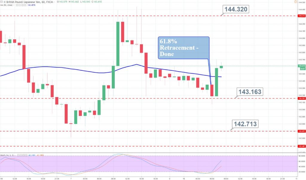 GBP/JPY has an immediate resistance at 144.200 along with a support 143.150. On the lower side, the violation of 143.150 can lead to 142.650