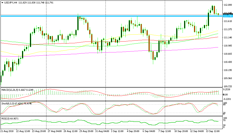 It seems as USD/JPY is heading for a decent retrace lower on the H4 chart, but it has reached this area now. The area around 111.70-111.80 used to be strong resistance during the previous two weeks and now it is supposed to turn into support.