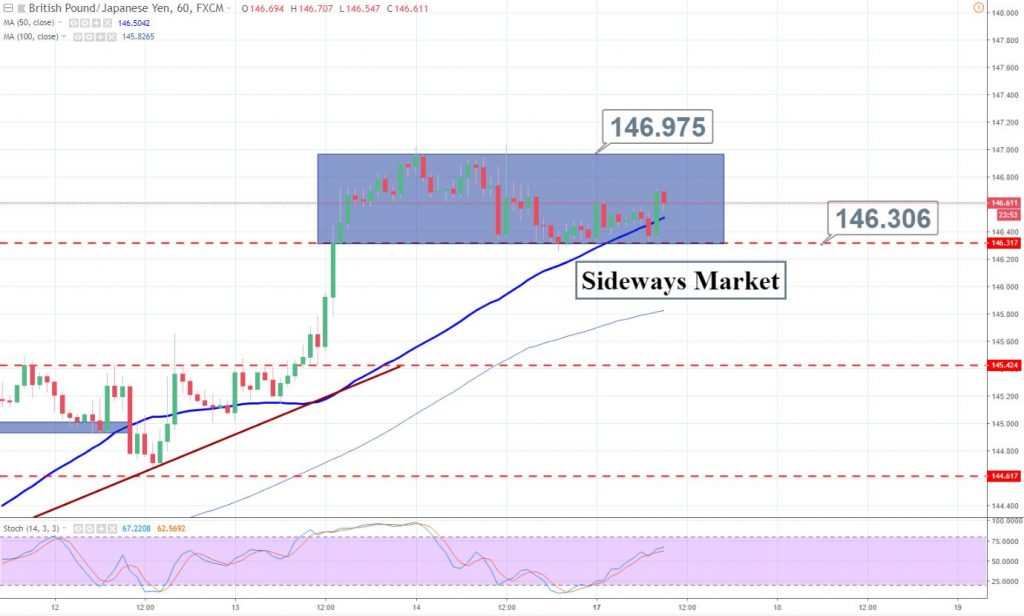 The financial markets are a bit slow today due to lack of major economic catalysts. Likewise, the GBP/JPY is also stuck in a sideways channel which is supporting it near 146.300 along with resistance at 146.950.
