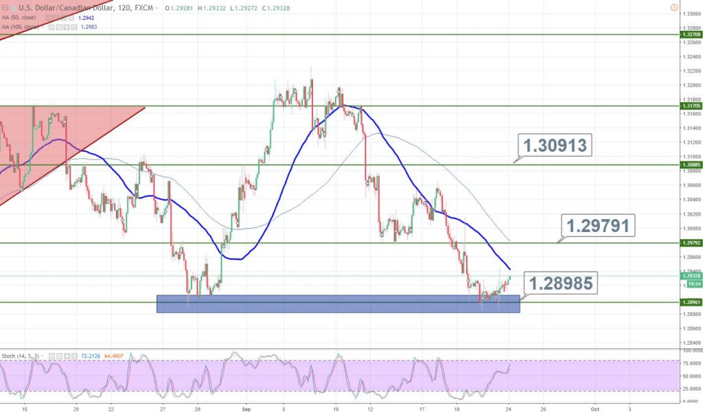 On the 2 -hour time frame, the USD/CAD has tested and failed to violate the double bottom support near $1.2900. The same level supported the pair on Aug 18, 2018. No surprises, the US dollar is getting stronger against the Loonie and that’s because of the Fed rate hike sentiment.