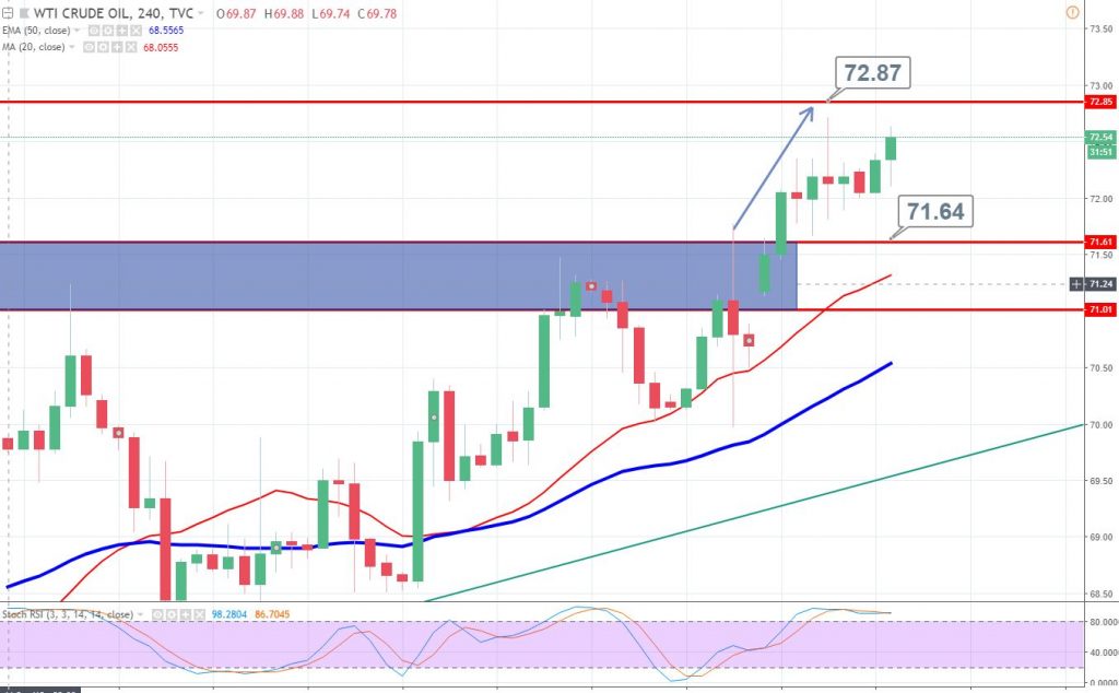 The WTI crude oil continues to trade bullish at $72.50 a barrel after Saudi Arabia and Russia ruled out any immediate hike in output...
