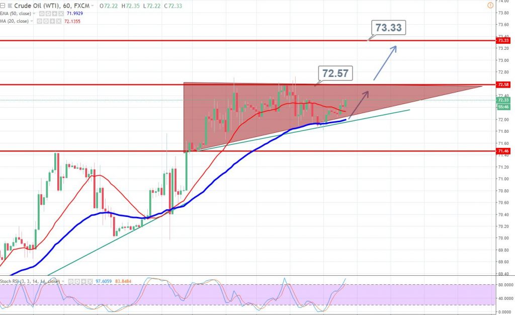Looking at the technical side, crude oil is facing a solid resistance near $72.50. The 20 and 50 periods EMA is supporting the commodity near $72. The violation of $72.50 can lead oil prices towards $73.35. Whereas, the market can remain bearish below $72.15. Looking at the strength of the recent bullish candle, it looks like crude oil will manage to violate $72.50 to target $73.35 and $73.65.