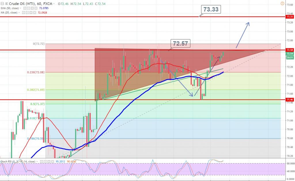 WTI Crude Oil is trading slightly bullish as traders focused on the chances of tighter markets due to US sanctions against OPEC’s third-largest crude exporter Iran, which is set to be inflicted in November.
