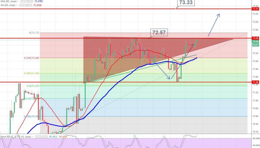 The idea is to stay bearish below $72.60 with a stop above $73 to target $71.55. Whereas, buying is preferred on the bullish breakout of $72.60 to target $73.35. Good luck!