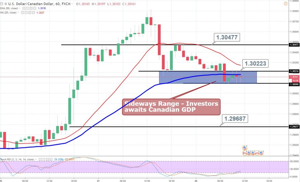 The USD/CAD is trading in a narrow trading range of $1.3009 - $1.3020. The GDP growth rate of 0.3% or above is likely to cause a bearish...