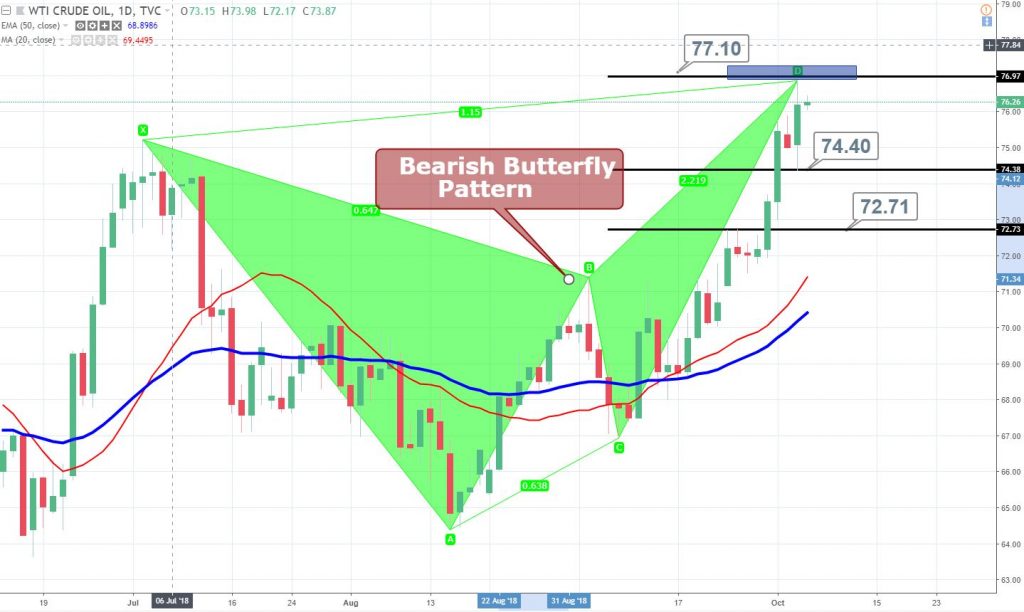 WTI Crude Oil Forms Bearish Butterfly While Iran Sanctions Looms!