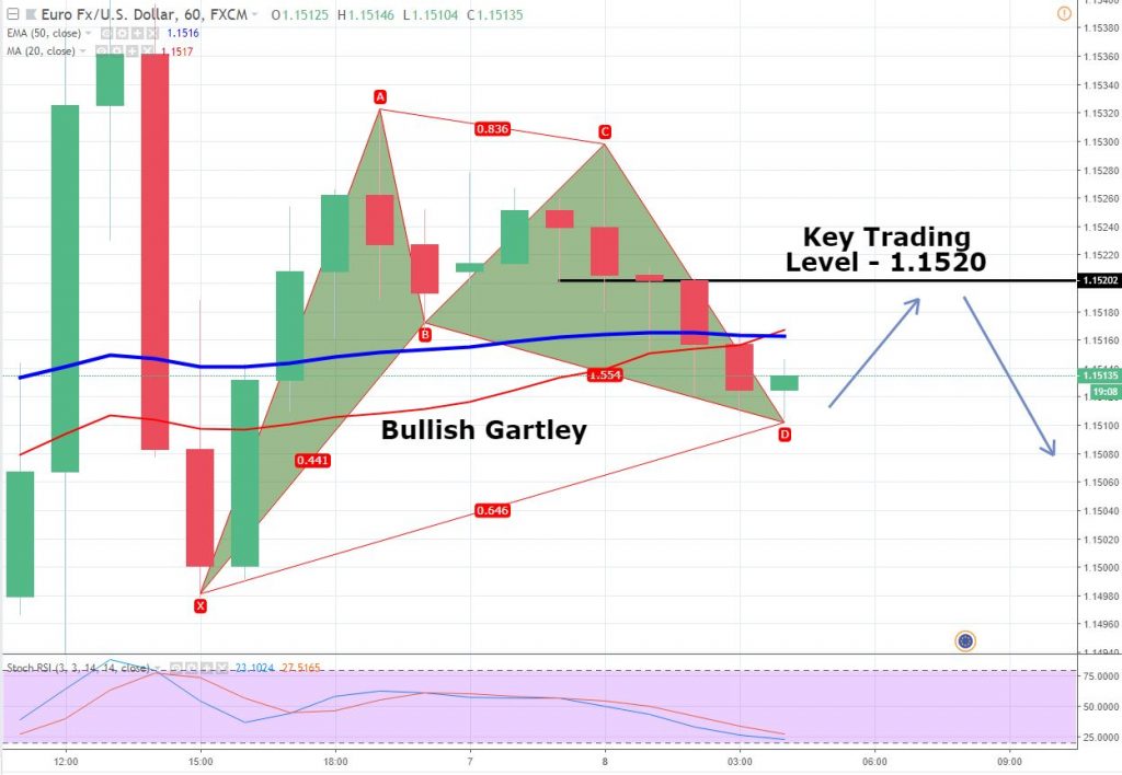 On the technical side, the pair has formed a bullish Gartley pattern which has completed its CD wave at $1.1500. The same level is working as a strong support, while the resistance prevails at $1.1520 today.