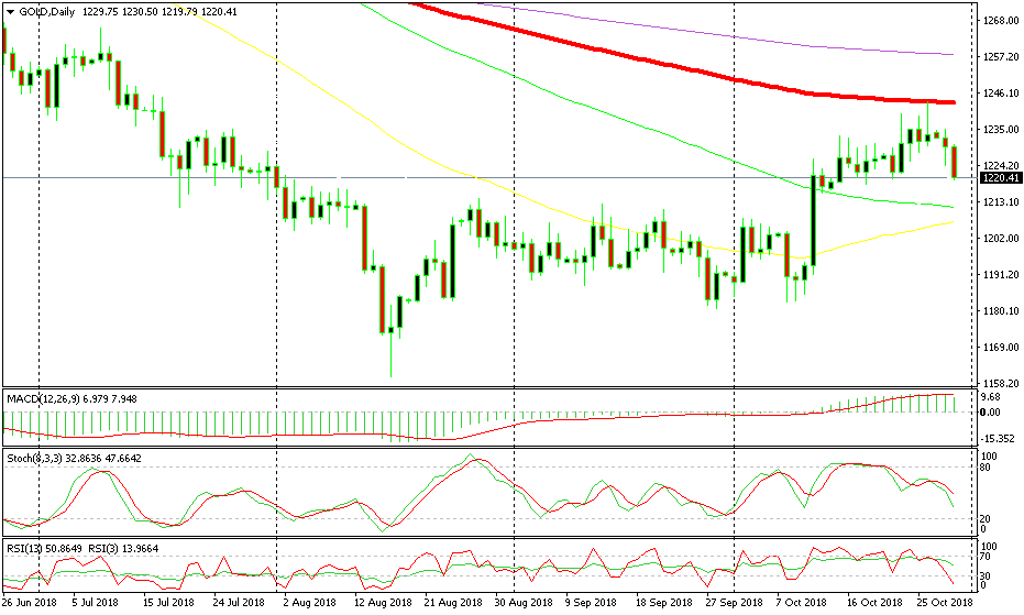 I highlighted the larger picture in GOLD a few times in the last few weeks, as the buyers were pushing the price up. The sentiment turned negative during September and October and as a result, safe haven assets received some strong bids. So, Gold made a decent bullish retrace for several weeks.