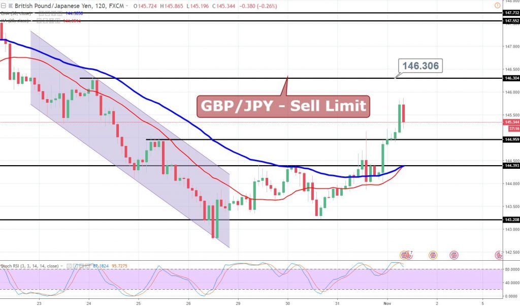 Technically speaking, the GBP/JPY has violated a strong resistance level of 145 which opened further room for buying until 146.300. The closing of hourly candles below this level may offer us an opportunity to short the pair.
