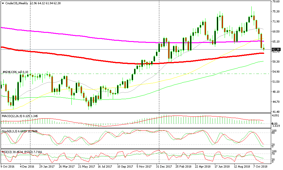 But once again, they pushed WTI Oil through it and through the 50 SMA (yellow) like a knife through butter. But now, the next test is at the 100 smooth MA (red) which provided support once in February this week, which lie around 100 pips lower at $61. Let’s see if the sellers will be able to push below that moving average, but the current price action, points o some more bearish momentum for the coming weeks.