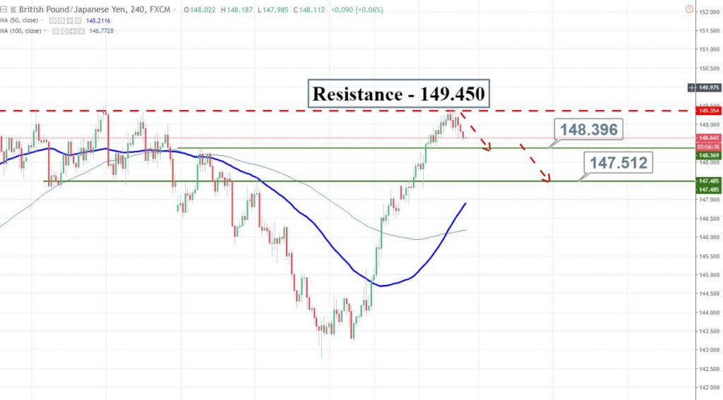 Technically speaking, this pair has tested 149.450 for the third time, yet failed to surpass this level. On the daily timeframe, the RSI and Stochastics were trading in the overbought zone which triggered the profit taking.