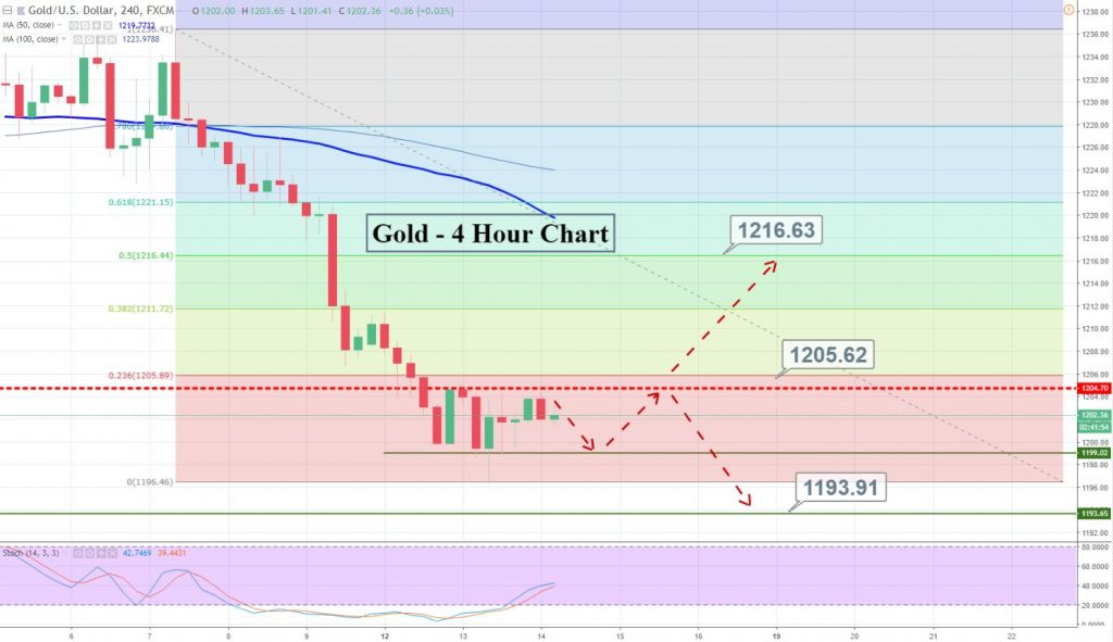 For the moment, gold is trading in a tight range of $1,199 – $1,205 which may get violated on the release of US inflation figures. The bullish breakout is likely to lead gold prices towards $1,211 and $1,216. Whereas, the market can stay bearish below $1,205 until $1,199 and $1,193.