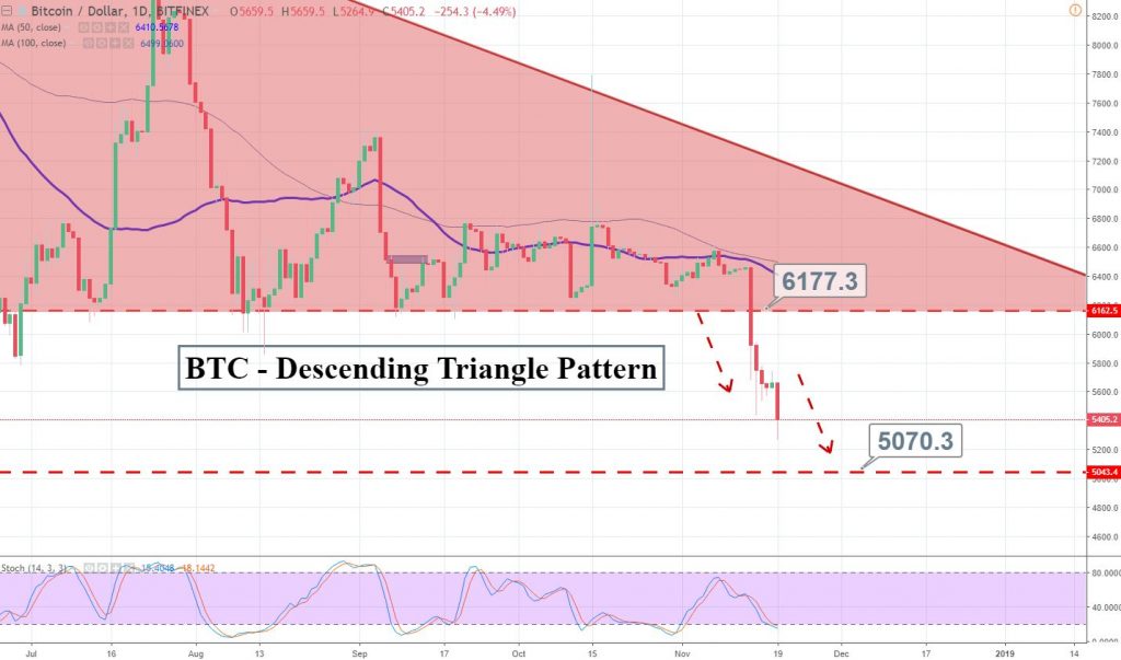The BTC/USD traded in a descending triangle pattern which provided it with a solid support at $6,160 and a resistance at $6,600. The 20..