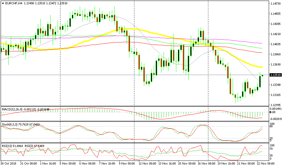 The H1 chart is well overbought for EUR/CHF but it is now nearly overbought on the H4 chart as well. The trend is bearish for this pair and the retrace higher is almost complete now after the boost that this pair received on the UK-EU agreement comments. The 50 SMA is also catching up with the price, so it is supposed to provide resistance to EUR/CHF if this pair climbs higher.