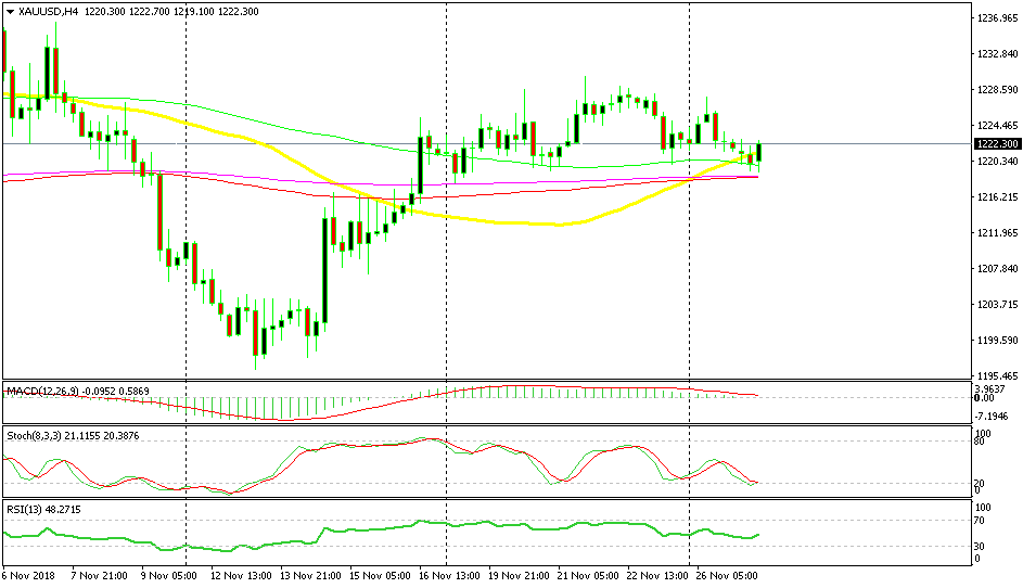 GOLD declined lower at the beginning of this month after the US midterm elections and the FED meeting were over. The USD got a relief after those two events and Gold started sliding lower, losing around $35 on the way down. But, it made a bullish reversal after it formed a doji candlestick at the $1,200 level.