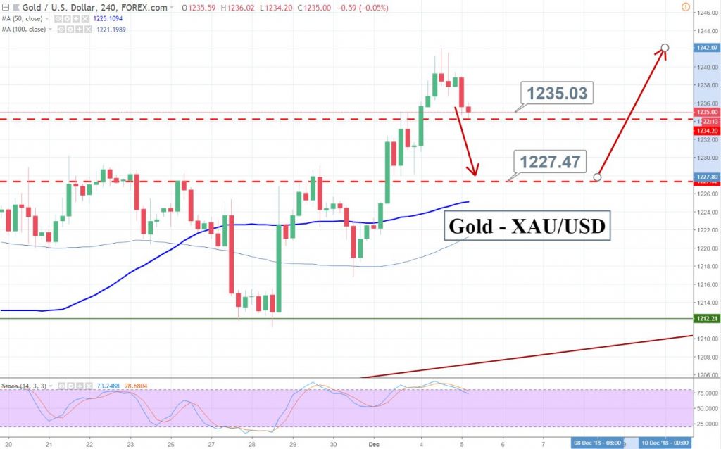 On the hourly timeframe, gold is likely to test the resistance come support level of $1,234. Below this, gold prices can drop towards $1,230 and $1,227. While gold can stay bullish above $1,234 to target $1,239 today.