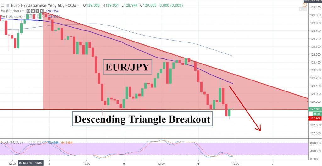 - On the technical side, the EUR/JPY is trying to violate descending triangle pattern which is providing a solid support at 127.800.