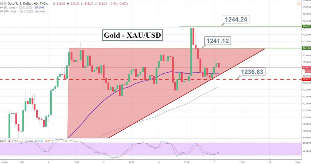 The idea is to trade the breakout, buying above $1,241 can lead the market towards $1,248. Whereas, below $1,238, gold can drop to $1,233.