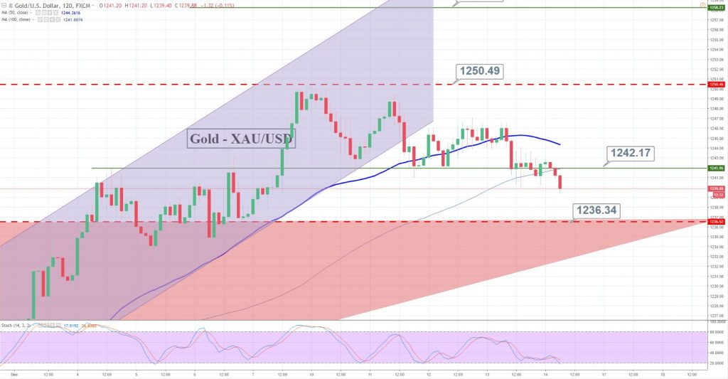 - Gold traded in a sideways range of $1,246 – $1,241 throughout the week, but it seems to break out on the lower side.
