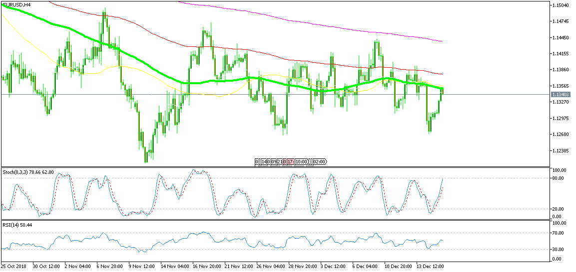 We opened a sell forex signal in EUR/USD earlier today after the jump over the Eurozone inflation report. But, the main trend is still bearish for this pair and last Friday the downtrend picked up pace as EUR/USD tried the support after losing around 70 pips that day. Today, the retrace higher looks complete as stochastic is almost overbought. Besides, the 100 SMA (green) has been providing resistance for hours on the H4 chart. On the H1 chart, you can find other moving averages at that level which are providing resistance and I don’t think the buyers have enough strength to break above it, so the downtrend should resume soon.