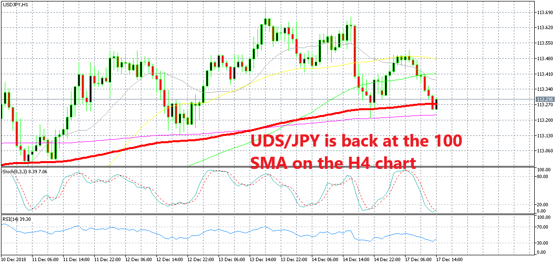 Although, the 50 SMA didn’t let go and it provided strong resistance at the top side. The price hanged around 113.50 where the 50 SMA stands and after failing to push the price above it, the buyers decided to call it a day. So, here we are, back at the 100 SMA on the H1 chart and the H4 chart.