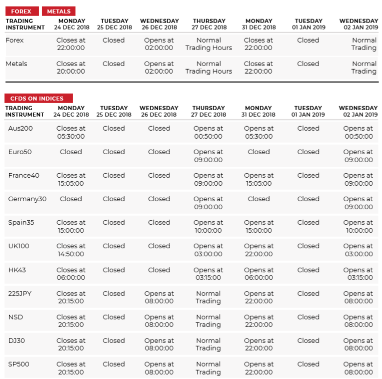 The current time span can be confusing as December endures some exceptional trading shots, but you don’t want to be trading in dead markets. The volatility is exceptionally low in the wake of thin trading volume. So let’s go through Christmas and New Year trading schedule below, presenting the typical trading hours of most brokers and trading instruments.