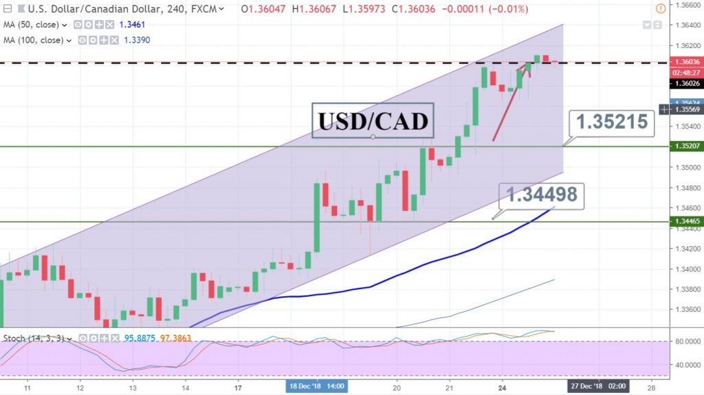 On the 4 -hour chart, the cable violated the psychological resistance level of $1.2700 to come out of the bearish channel. Looks like the pair is taking a bullish reversal. However, we can’t say much as the volatility remains low due to the holiday season.