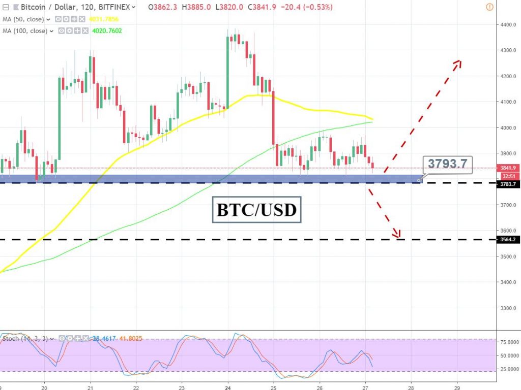 A break below $3,785 will determine the next movement in Bitcoin and the most likely target is $3,560.