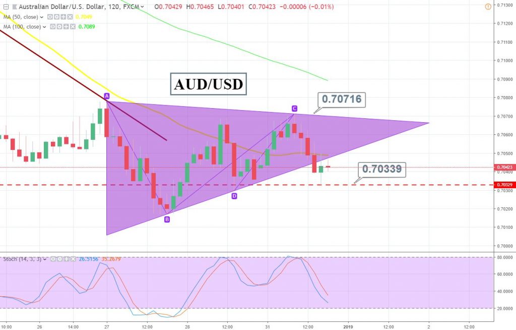 The AUD/USD is looking especially bearish after breaking out of an asymmetric triangle pattern which extended solid support near 0.7050, a key level.