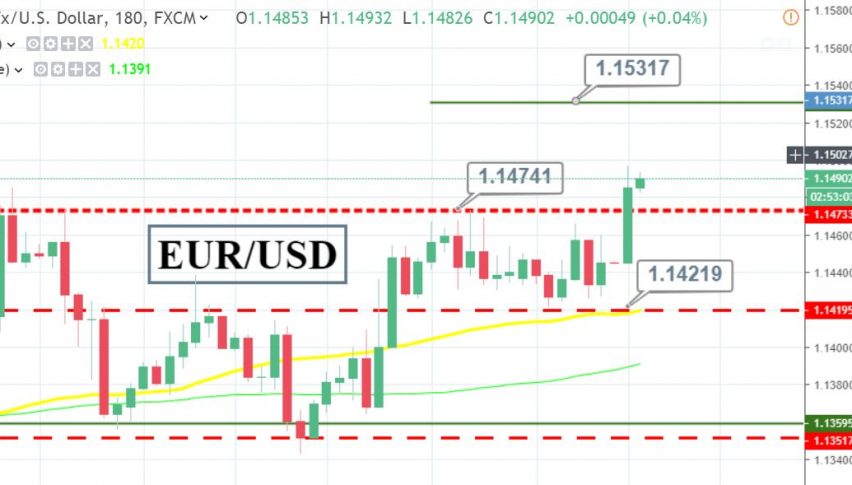 On the 3- hour chart, EUR/USD maintained a tight trading range of $1.1470 – $1.1420, which finally got violated during the Asian session today. The EUR/USD is holding above $1.1470, the resistance level which is now working as support.