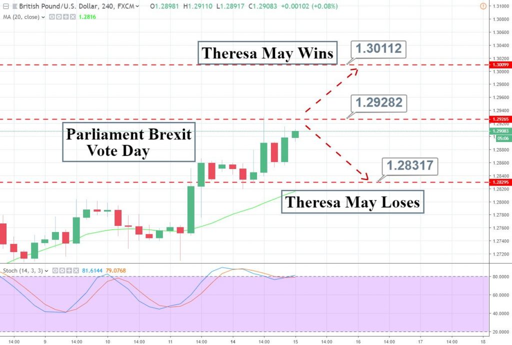 Today, the UK members of Parliament will commence voting on Prime Minister May’s withdrawal deal, which is expected to take place between 7:00 pm and 9:00 pm GMT. However, there’s no specific time for the vote to end.