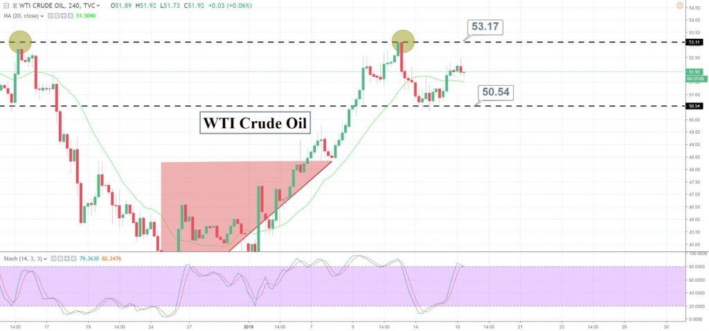 Crude oil is trading slightly bullish at $51.85, supported by China’s proposal to introduce policies to support a slowing economy. The market is trading crude oil