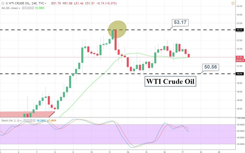 Technically, WTI crude oil seems to be bearish falling below $51.47, a major resistance level. Moreover, WTI is trading in overbought territory and needs to retrace back before further buying. The RSI has also crossed below 50, demonstrating a bearish tone.