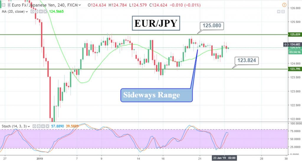 The Japanese yen is going nowhere against Euro and continues to trade in a tight trading range of 125 - 123.250 over the last three weeks.
