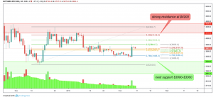 That being said, it seems likely that Bitcoin will find short-term support at the $3,650 level, where the 0.382 fib level is located. If Bitcoin holds above $3,550, it seems likely that a continuation of the uptrend will follow. However, the overall market sentiment shows no signs of an ending bear trend, which is why I suggest playing the market with caution.